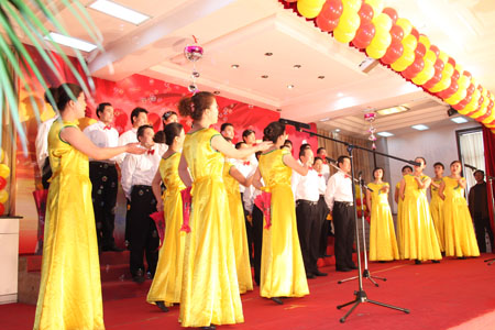 領(lǐng)導(dǎo)合唱《草原上升起不落的太陽(yáng)》、《團(tuán)結(jié)就是力量》
