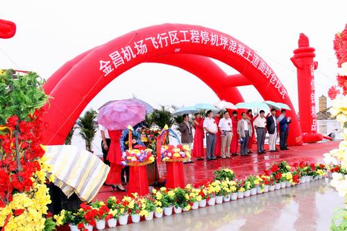 2010年8月20日上午10時,金昌機場飛行區(qū)停機坪混凝土道面工程順利封倉。甘肅省交通運輸廳、金昌市政府、甘肅機場建設(shè)投資管理公司、甘肅機場項目建設(shè)指揮部及施工單位等有關(guān)單位領(lǐng)導(dǎo)現(xiàn)場見證了道面工程順利封倉的時刻。