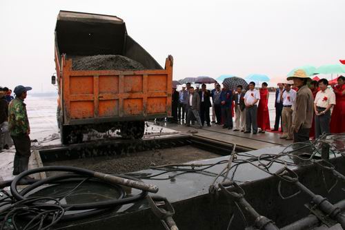 由公司承建的金昌機場停機坪工程按4C標(biāo)準(zhǔn)設(shè)計,站坪機位4個(2B2C),總面積2.65萬平方米,可供波音737和空客320等機型的起降。該項工程自2009年10月進(jìn)場,公司金昌機場項目部全體人員在高溫酷暑、大風(fēng)揚沙等惡劣氣候條件下,克服種種困難,通過改進(jìn)施工工藝、調(diào)整作業(yè)時間等措施,順利完成了基礎(chǔ)施工。項目部僅用了25個晝夜就完成停機坪2.65萬平方米混凝土道面工程施工。