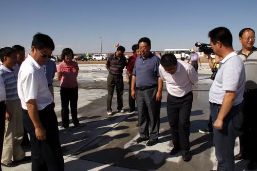 8月21日,由喬新山局長率領(lǐng)的民航西北管理局工作檢查組一行蒞臨金昌機(jī)場飛行區(qū)施工現(xiàn)場檢查指導(dǎo)工作。在飛行區(qū)停機(jī)坪建設(shè)工地,在了解到公司金昌機(jī)場項(xiàng)目部僅用了二十五個(gè)晝夜完成了總面積2.65萬平方米停機(jī)坪道面工程的情況后,對(duì)大家的辛勤勞動(dòng)給予了充分肯定,并鼓勵(lì)廣大建設(shè)者繼續(xù)鼓足干勁、克服困難,發(fā)揚(yáng)求真務(wù)實(shí)、艱苦奮斗的作風(fēng),確保工程按期完工。