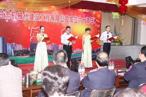 2013年3月22日下午兩點十分,甘肅機械化建設(shè)工程有限公司成立六十周年慶典大會在公司二樓大會議室舉行。公司領(lǐng)導(dǎo)、部分退休老領(lǐng)導(dǎo)、機關(guān)全體員工、各基層單位先進個人及代表出席大會。大會分兩個階段進行,公司黨委書記胡德生同志主持大會。大會第一階段,公司董事長陳想蕃先生向大會作慶典致辭,黨委書記胡德生同志作了重要講話。大會第二階段為公司文藝匯演,匯演共十二個節(jié)目,公司領(lǐng)導(dǎo)及員工歡聚一堂,表演精彩紛呈,現(xiàn)場氣氛非常熱烈,大會持續(xù)了近兩個小時。