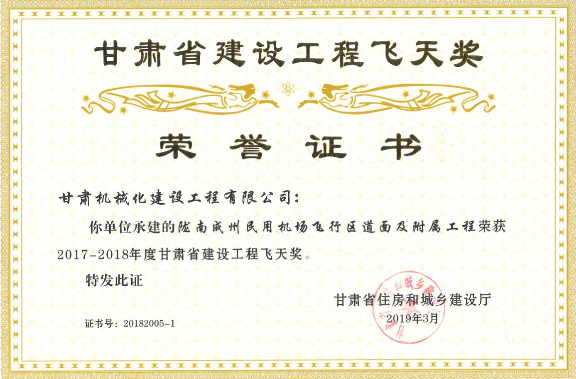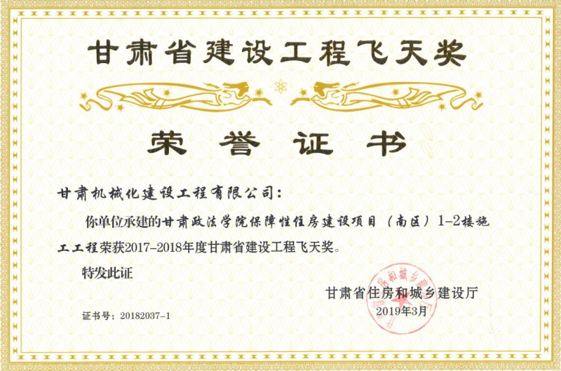 甘肅省住房和城鄉(xiāng)建設(shè)廳關(guān)于2017-2018年度(第二批)甘肅省建設(shè)工程飛天金獎(jiǎng)和飛天獎(jiǎng)入選名單公示已經(jīng)結(jié)束,我司共有兩個(gè)項(xiàng)目榮獲甘肅省建設(shè)工程飛天獎(jiǎng)。