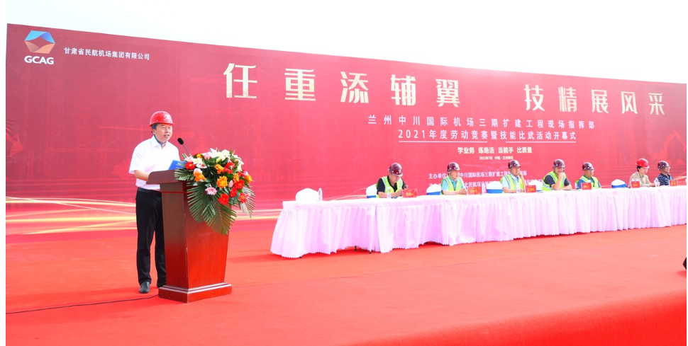 7月27日上午,由蘭州中川國際機(jī)場三期擴(kuò)建工程現(xiàn)場指揮部主辦,我司與西安西北民航項(xiàng)目管理有限公司承辦,為期兩天的蘭州中川國際機(jī)場三期擴(kuò)建工程2021年度“勞動競賽曁技能比武”活動順利開幕。蒞臨開幕式的領(lǐng)導(dǎo)有蘭州市蘭州新區(qū)黨群部秦副部長、蘭州市西固區(qū)總工會楊主席、蘭州中川國際機(jī)場三期擴(kuò)建工程現(xiàn)場指揮部黨委書記、指揮長,黨委副書記、常務(wù)副指揮長等領(lǐng)導(dǎo),以及我司黨委書記、副總經(jīng)理和來自8家參賽單位的領(lǐng)導(dǎo)和參賽選手。