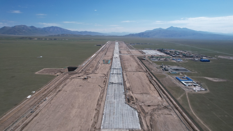 8月18日,隨著現(xiàn)場最后一車混凝土緩緩倒入倉內,我公司承建的新疆和靜巴音布魯克機場跑道全線貫通。
