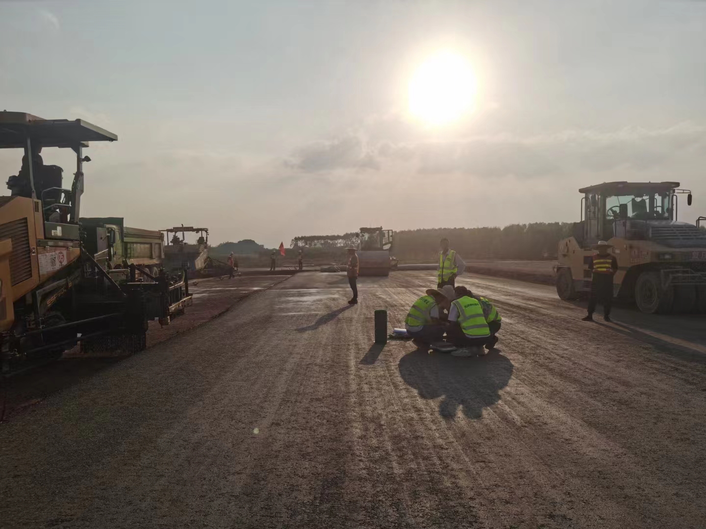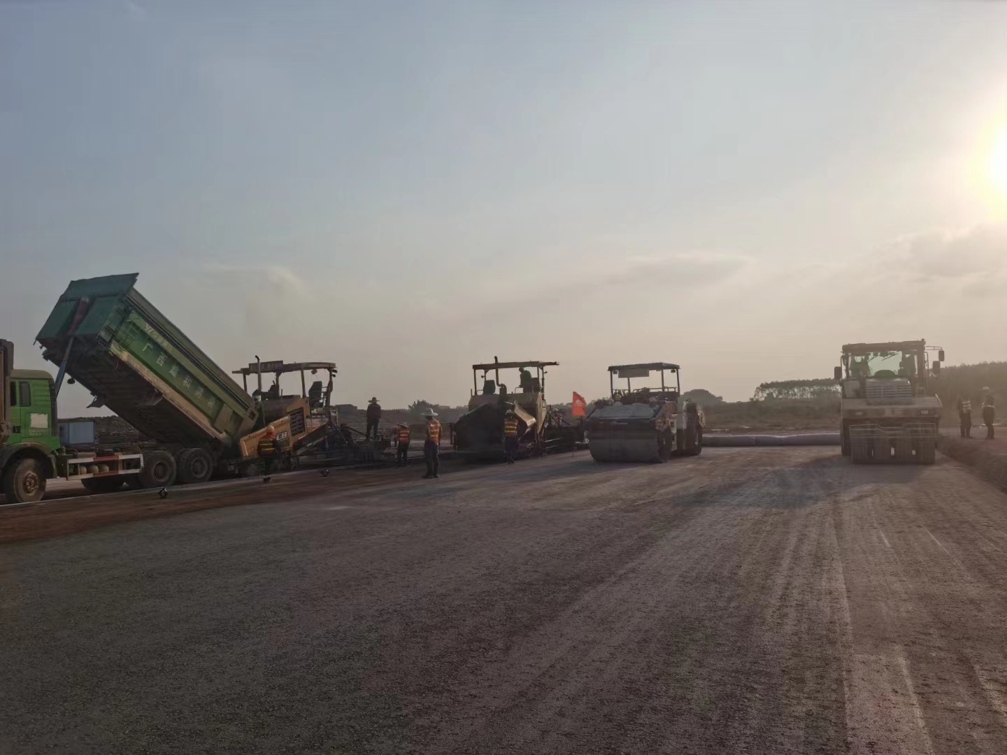 11月28日,隨著第一車水泥穩(wěn)定砂礫混合料倒入攤鋪機(jī),攤鋪機(jī)緩緩啟動,標(biāo)志著由我司承建的南寧吳圩機(jī)場改擴(kuò)建工程飛行區(qū)場道工程(四標(biāo)段)水穩(wěn)基層試驗(yàn)段施工正式開始。
