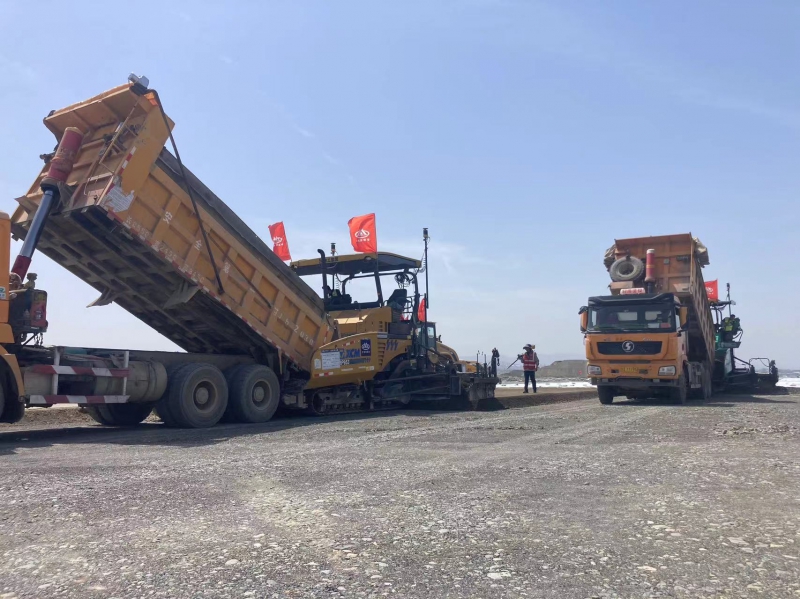 為保證攤鋪順利進(jìn)行,項目部前期做好各項準(zhǔn)備工作,在施工過程中,嚴(yán)格把控施工環(huán)節(jié),確保攤鋪施工銜接有序,高效優(yōu)質(zhì),一次成型,并使用mmGPS 3D攤鋪技術(shù)進(jìn)行兩機聯(lián)鋪。