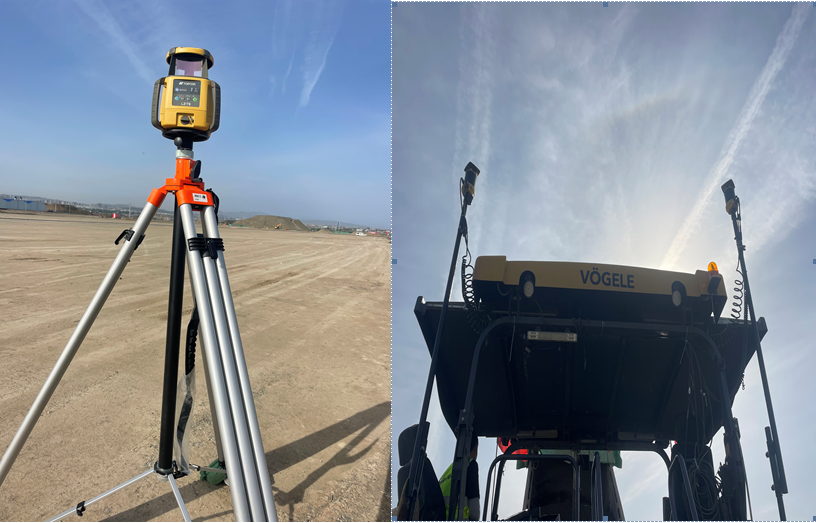 我司首次在烏魯木齊機場使用mmGPS 3D攤鋪技術(shù),mmGPS 3D攤鋪技術(shù)是指通過衛(wèi)星全球?qū)Ш蕉ㄎ幌到y(tǒng)和激光高精度測量系統(tǒng),立體控制攤鋪的高程精度和平面精度。該技術(shù)克服了常規(guī)掛鋼線施工時掛鋼線下垂、傳感器跳動等問題,同時減少了測量放樣的工作內(nèi)容,很好地控制了結(jié)構(gòu)層厚度、高程及平整度,尤其在多機聯(lián)鋪作業(yè)方式下效果明顯,實現(xiàn)了“機械化換人、自動化減人”的理念,減少了人員投入的同時減少了材料的浪費,降低了項目的安全風(fēng)險,產(chǎn)生了明顯的經(jīng)濟(jì)效益。