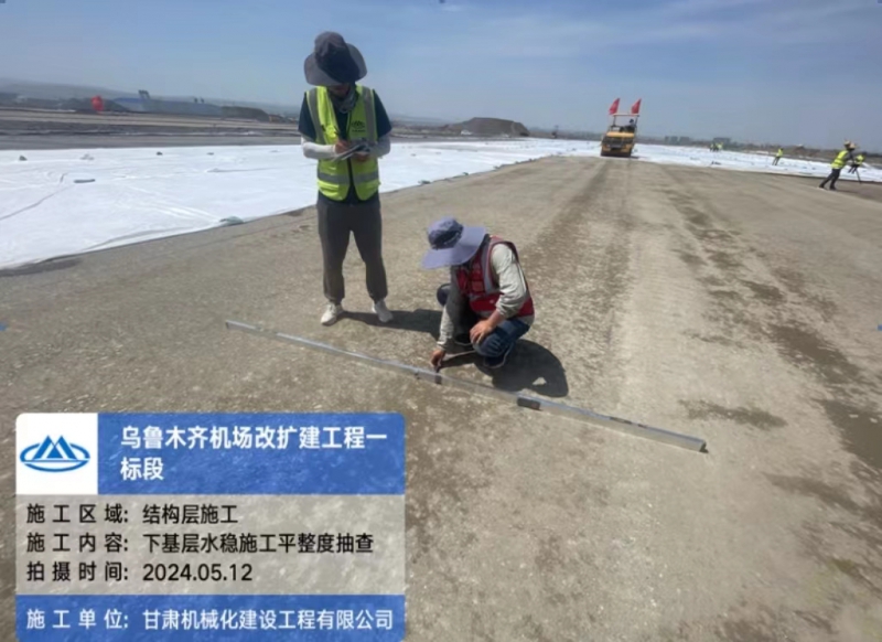 2024年5月11日,伴隨著第一車水泥穩(wěn)定砂礫混合料緩緩倒入攤鋪機料斗,標(biāo)志著由我司承建的烏魯木齊機場一標(biāo)段水穩(wěn)基層施工正式拉開序幕。